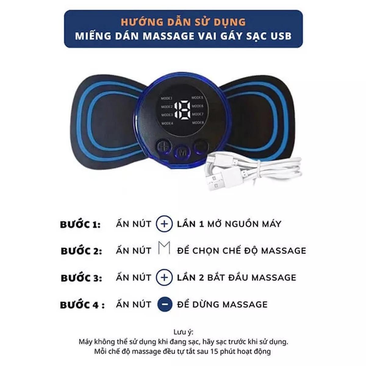 Miếng Massage Xung Điện Cổ Vai Gáy, Bắp Tay, Lưng Bằng Sung Điện đỡ đau Nhức Hiệu Qủa -Máy mat sa thân hình 10 Chế Độ