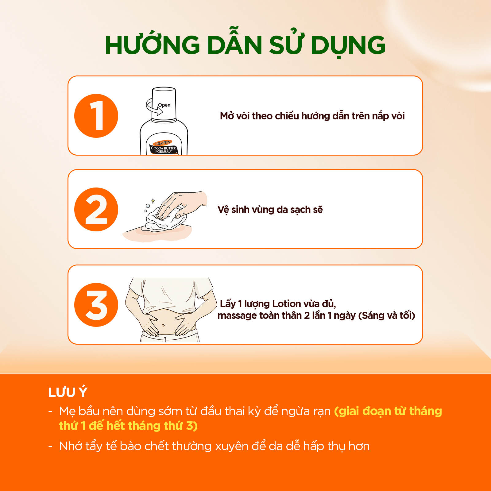 o Nên tẩy tế bào chết ít nhất 2 lần/tuần khi sử dụng sản phẩm, để chất kem dễ dàng thẩm thấu.