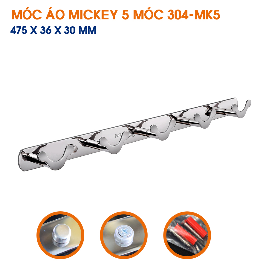 Thông số kỹ thuật Móc áo mickey inox 304 TOVASHU nhiều loại