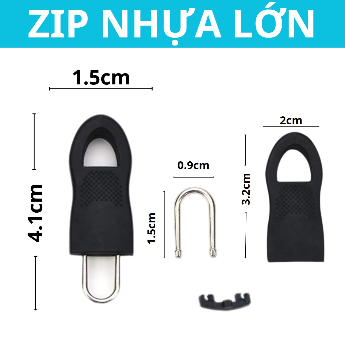 + Zip nhỏ: Dài 3cm, Rộng 0,8cm.
