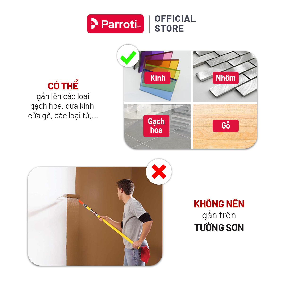 Móc dán tường treo cây lau nhà siêu chịu lực Parroti Keeper KP03 là sản phẩm tiện ích giúp cho không gian nhà bạn gọn gàng và ngăn nắp hơn, miếng dán chắc chắn và dính trên mọi loại bề mặt sàn như sàn gạch, sàn gỗ, sàn đá, tường ốp gạch và mặt kính, ngoài việc treo cây lau nhà, chổi lau nhà bạn cũng có thể tận dụng để treo các vật dụng khác như ô dù, máy sấy tóc.