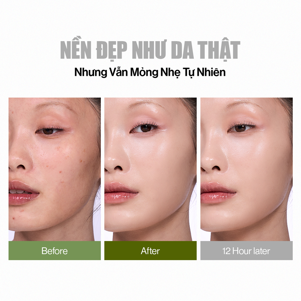 Lớp nền mỏng nhẹ như không: Công thức mix nền độc quyền với công nghệ 3-Stay Power kết hợp hoàn hảo giữa serum và kem nền, giúp thấm sâu – khóa chặt – kiểm soát dầu, giữ vẻ rạng rỡ suốt 12 giờ mà không lo bí bết hay trôi nền.
