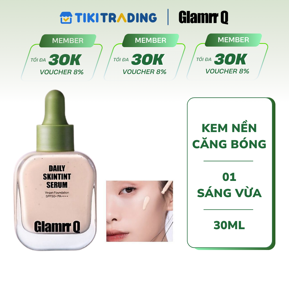Kem nền Serum Căng Bóng Glamrr Q Daily SkinTint Serum Vegan Foundation SPF50 PA++++ 30ml
