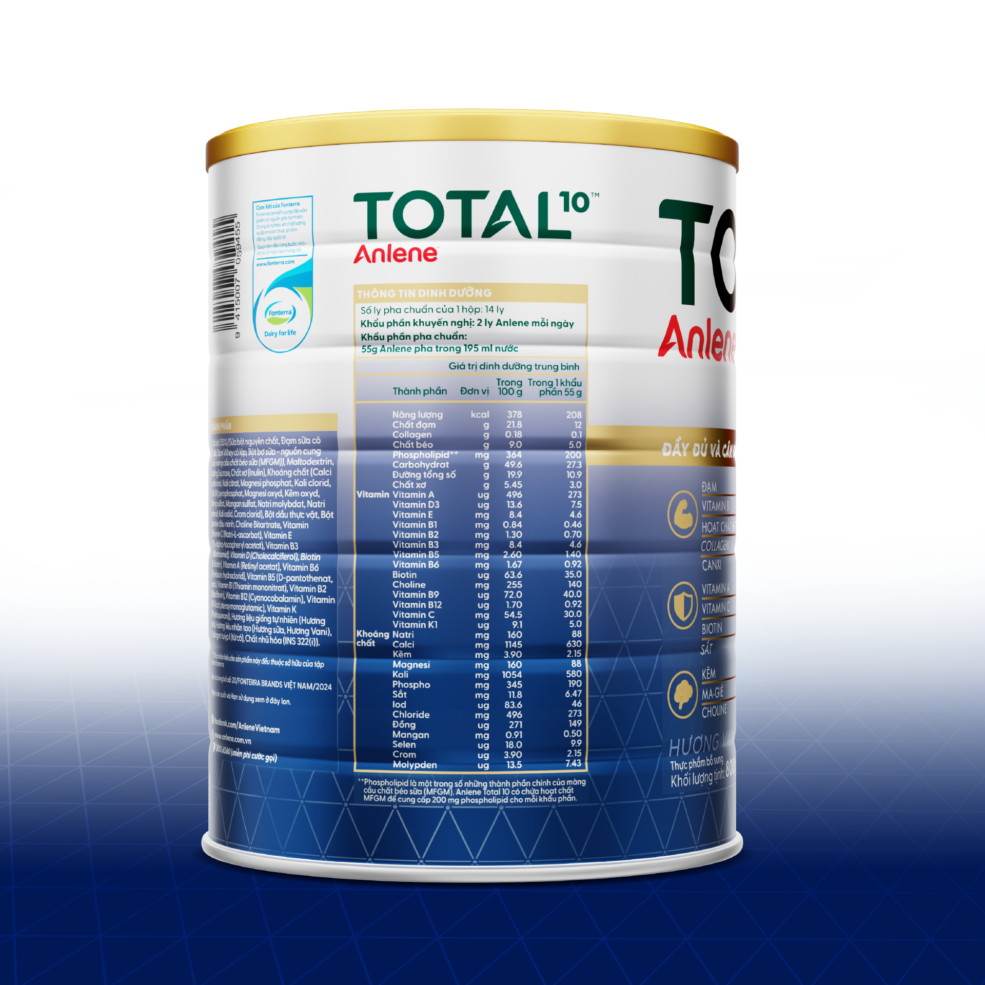 Thông số kỹ thuật [MỚI] Sữa bột bổ sung dinh dưỡng Anlene Total 10 lon 800g