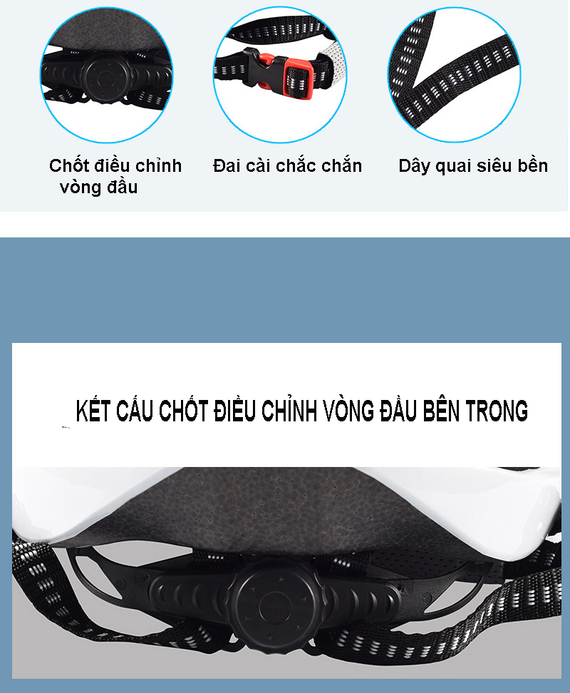 - Ngoài ra mũ bảo hiểm xe đạp được làm từ chất liệu Xốp EPS bên trong,giúp mũ chống va đập và rất nhẹ khi sử dụng.