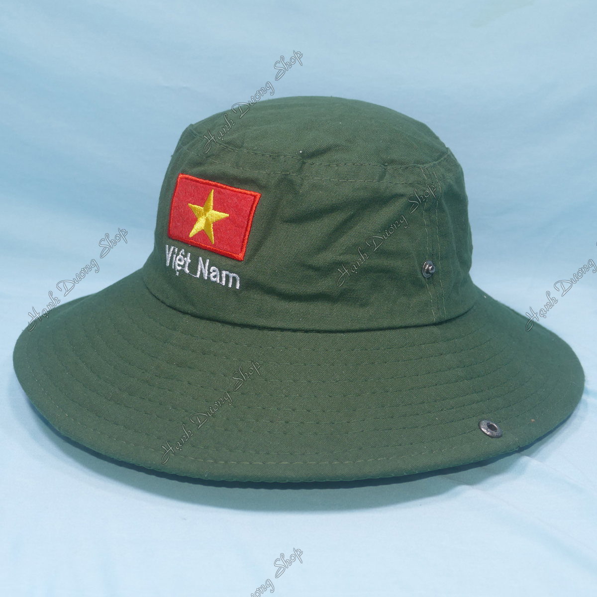 Thông số kỹ thuật Mũ tai bèo nam vành rộng thêu cờ Việt Nam, chất liệu vải kaki oát mát mẻ, bền chắc - Hạnh Dương