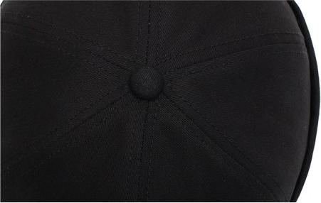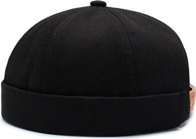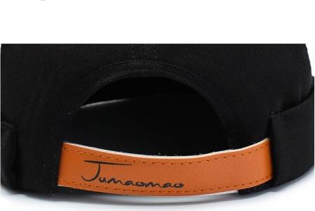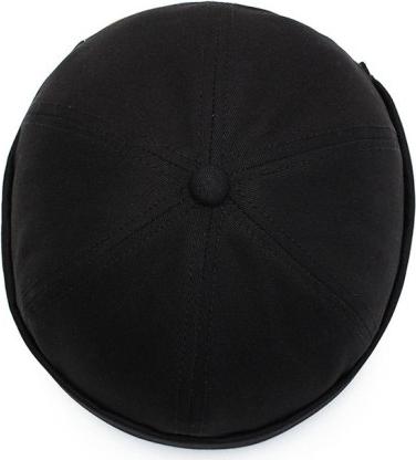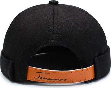 Mũ tròn Miki màu đen trơn có thêu chữ. Nay mũ không có chữ thêu đội vào đầu như một cái nồi đất.