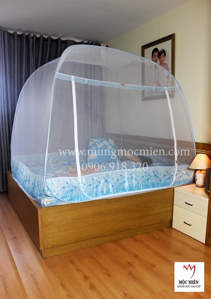 Thông số kỹ thuật Mùng Chụp Mộc Miên - Tự Bung Đỉnh Rộng Có Viền Chân - Trăng Viền Xanh