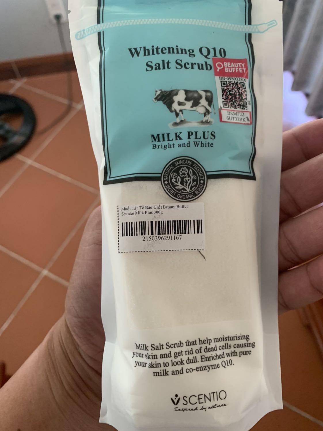 Muối tẩy tế bào chết sữa bò Thái Lan Scentio Milk Plus với công thức chiết xuất từ Protein sữa và Co- enzyme Q10 giúp tẩy sạch nhẹ nhàng tế bào da chết đồng thời chăm sóc làn da luôn sáng rạng rỡ, căng mịn và tràn đầy sức sống