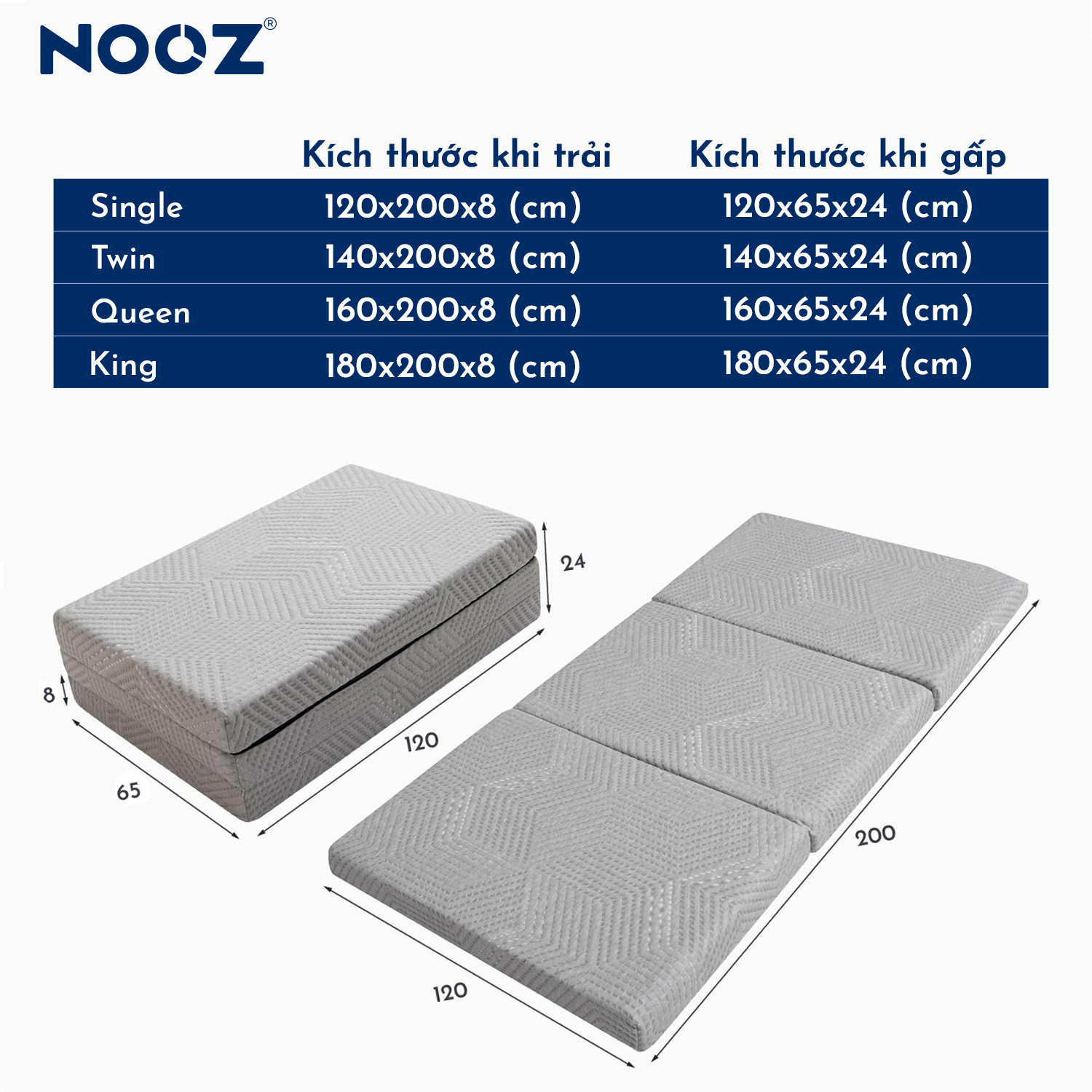Thông số kỹ thuật Nệm Foam Gấp Ba NOOZ Home Goods Mattress Tiêu Chuẩn CertiPUR-US Ruột Đệm Cao Su Non Gấp Gọn Tiện Lợi