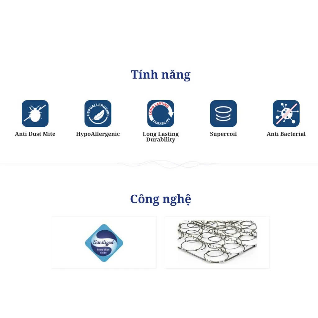 HỮU ÍCH CHO SỨC KHỎE: Nệm dunlopillo spring venus áp dụng công nghệ Sanitized với tính năng chống vi khuẩn nấm mốc giúp ngăn chặn các vấn đề về sức khỏe.