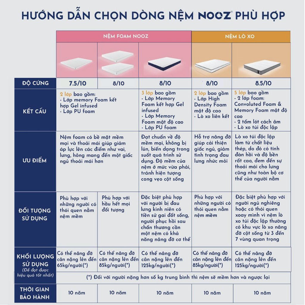 Thông số kỹ thuật Nệm Foam NOOZ Home Goods Tiêu Chuẩn CertiPUR-US Với Hai Tầng Foam Nâng Đỡ Ruột Đệm Cao Su Non Vỏ Nệm Tencel