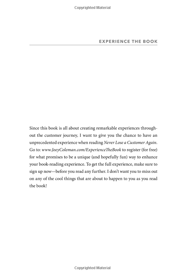 His approach to creating remarkable customer experiences requires minimal financial investment and will be fun for owners, employees, and teams to implement. This book is required reading for business owners, CEOs, and managers - as well as sales and marketing teams, account managers, and customer service representatives looking for easy to implement action steps that result in lasting change, increased profits, and lifelong customer retention.