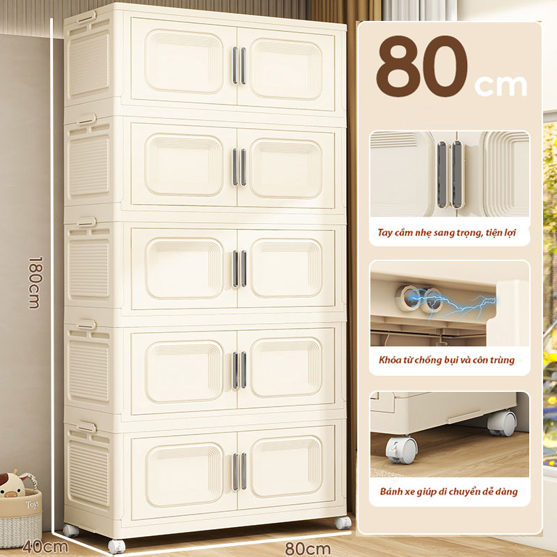 Thông số kỹ thuật (Ngang 80cm) Tủ Nhựa Gấp Gọn 3/4/5 Tầng Cao Cấp 2 Cánh Cửa Mở-Hộp Đựng Đồ Đa Năng Bằng Nhựa PP, Tháo Lắp Dễ Dàng