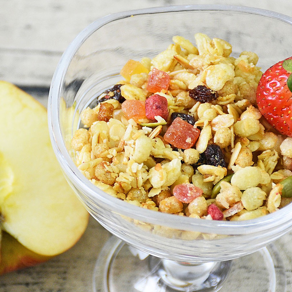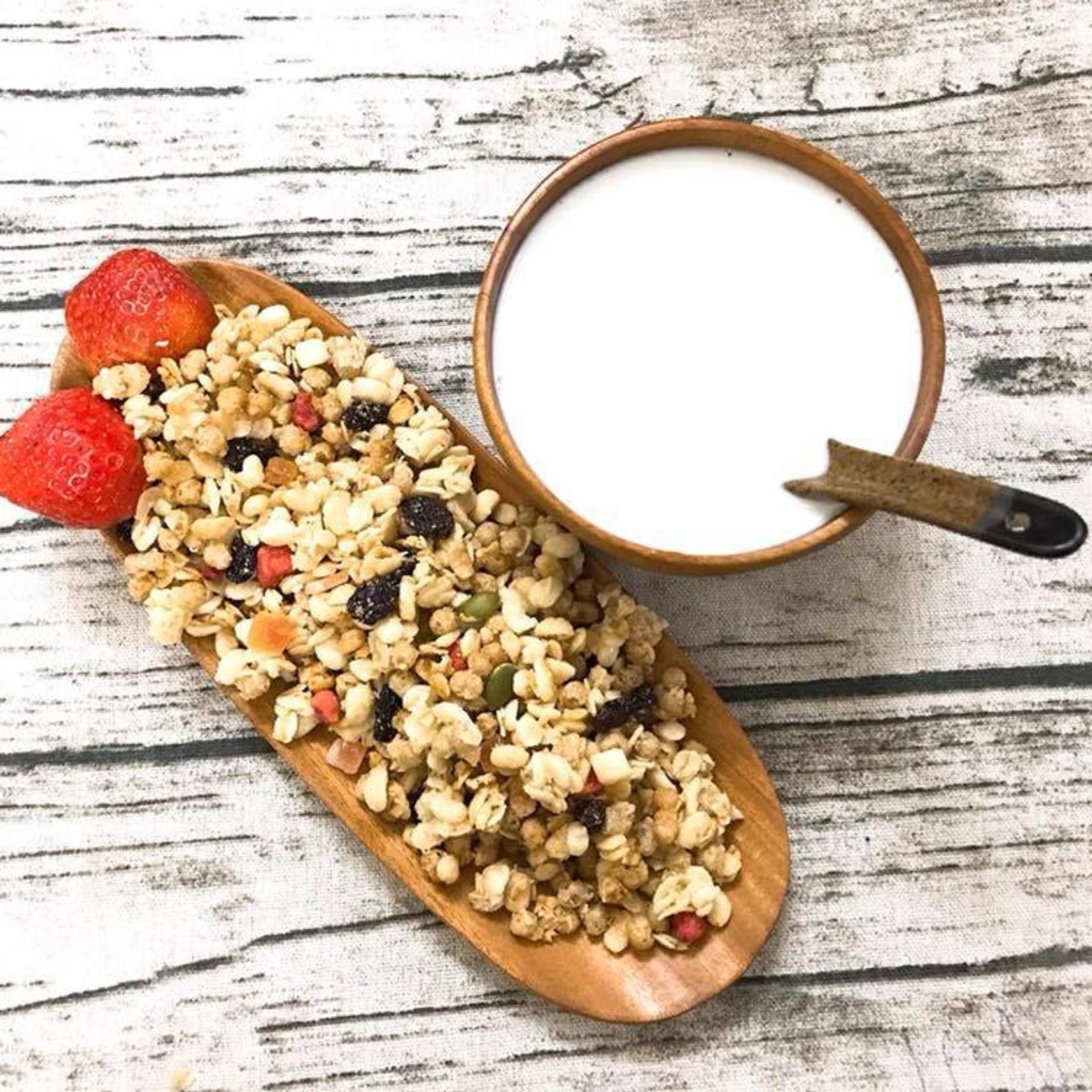 Là một loại ngũ cốc Nhật Bản giàu chất dinh dưỡng, chứa nhiều loại trái cây và hạt được sấy khô gồm yến mạch, lúa mạch, táo, nho, đu đủ, dâu tây, dừa, ngô, bí ngô, hạnh nhân, gạo nâu, sữa….
