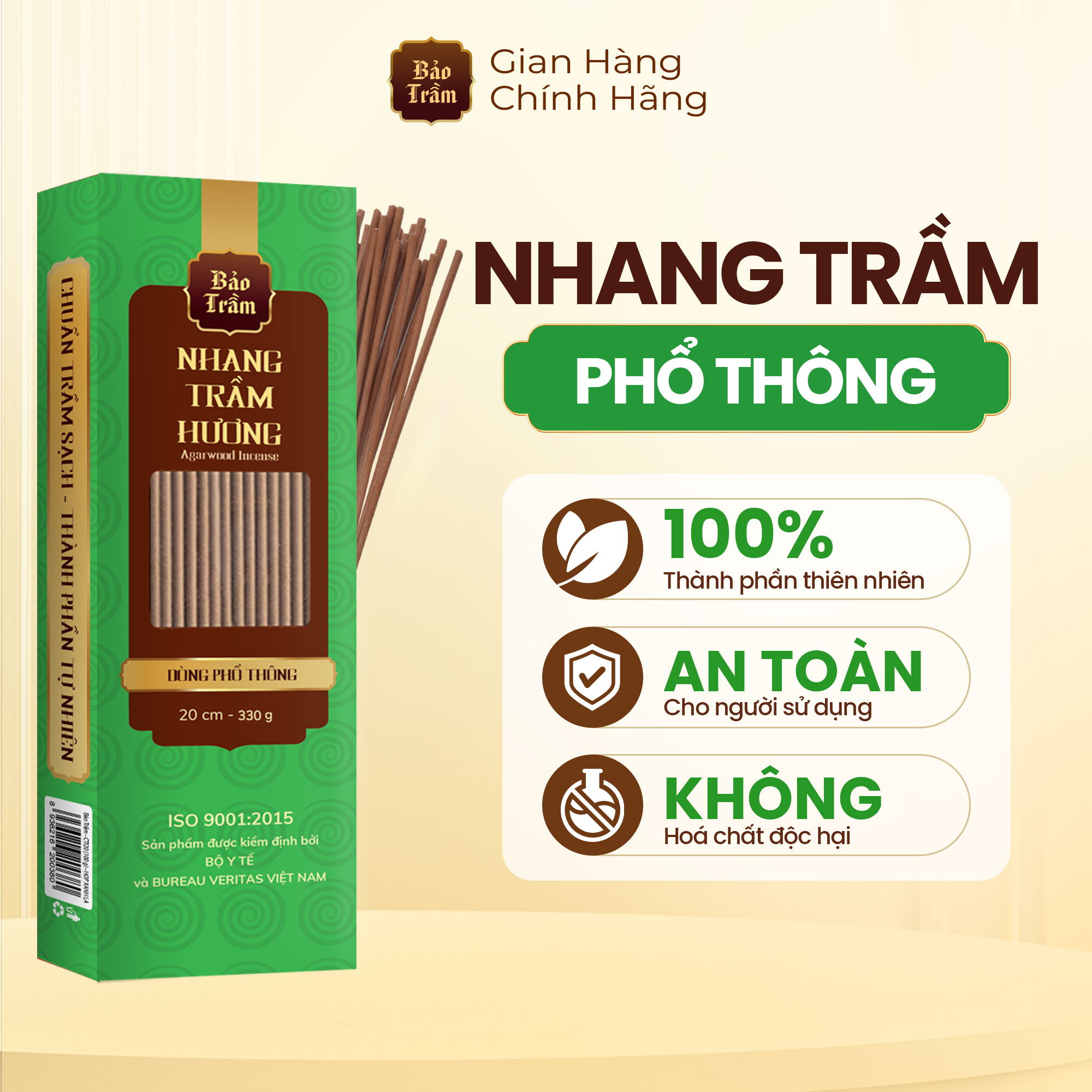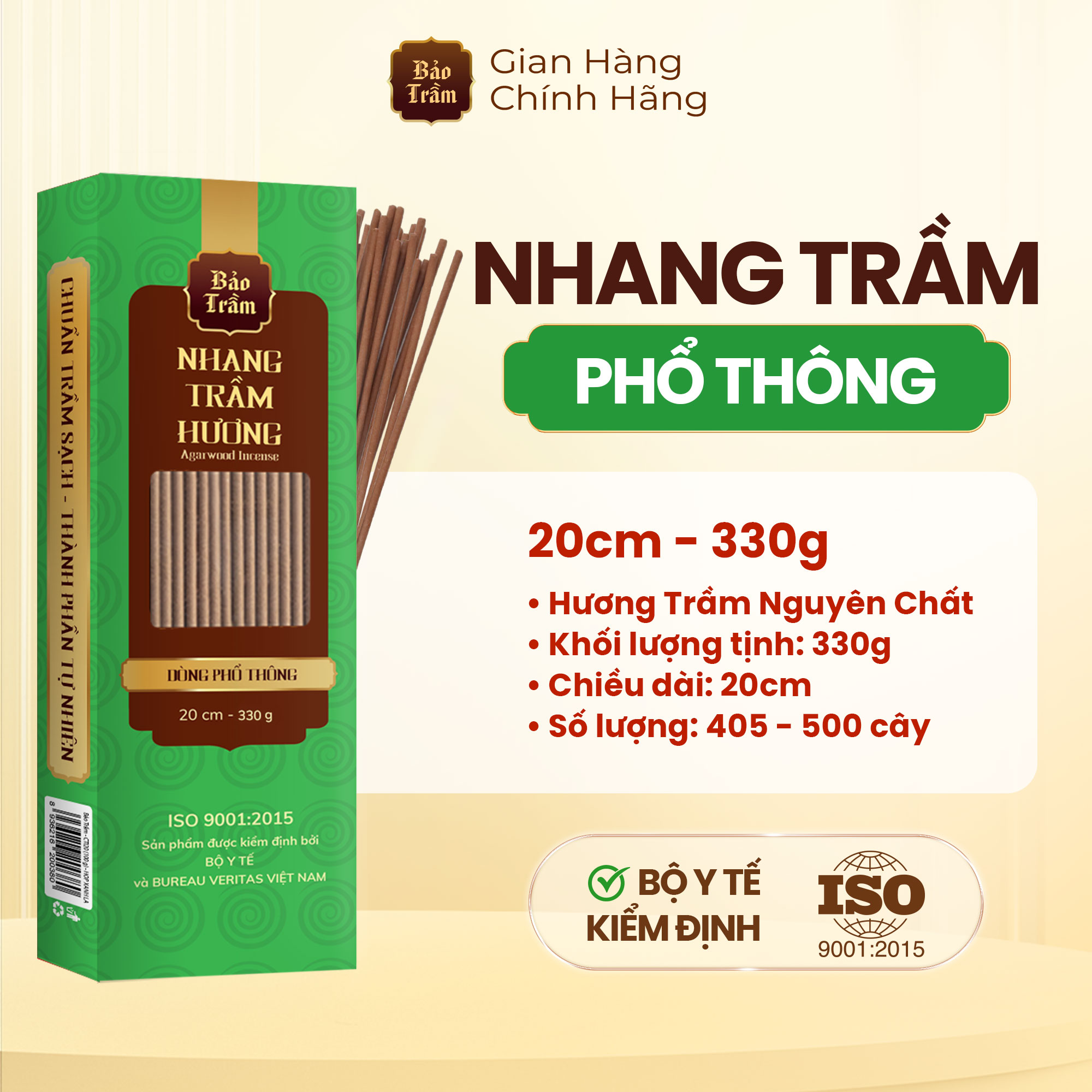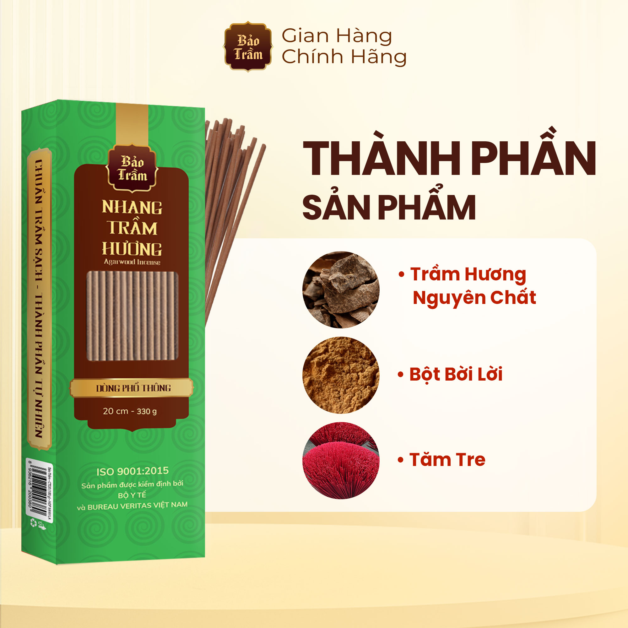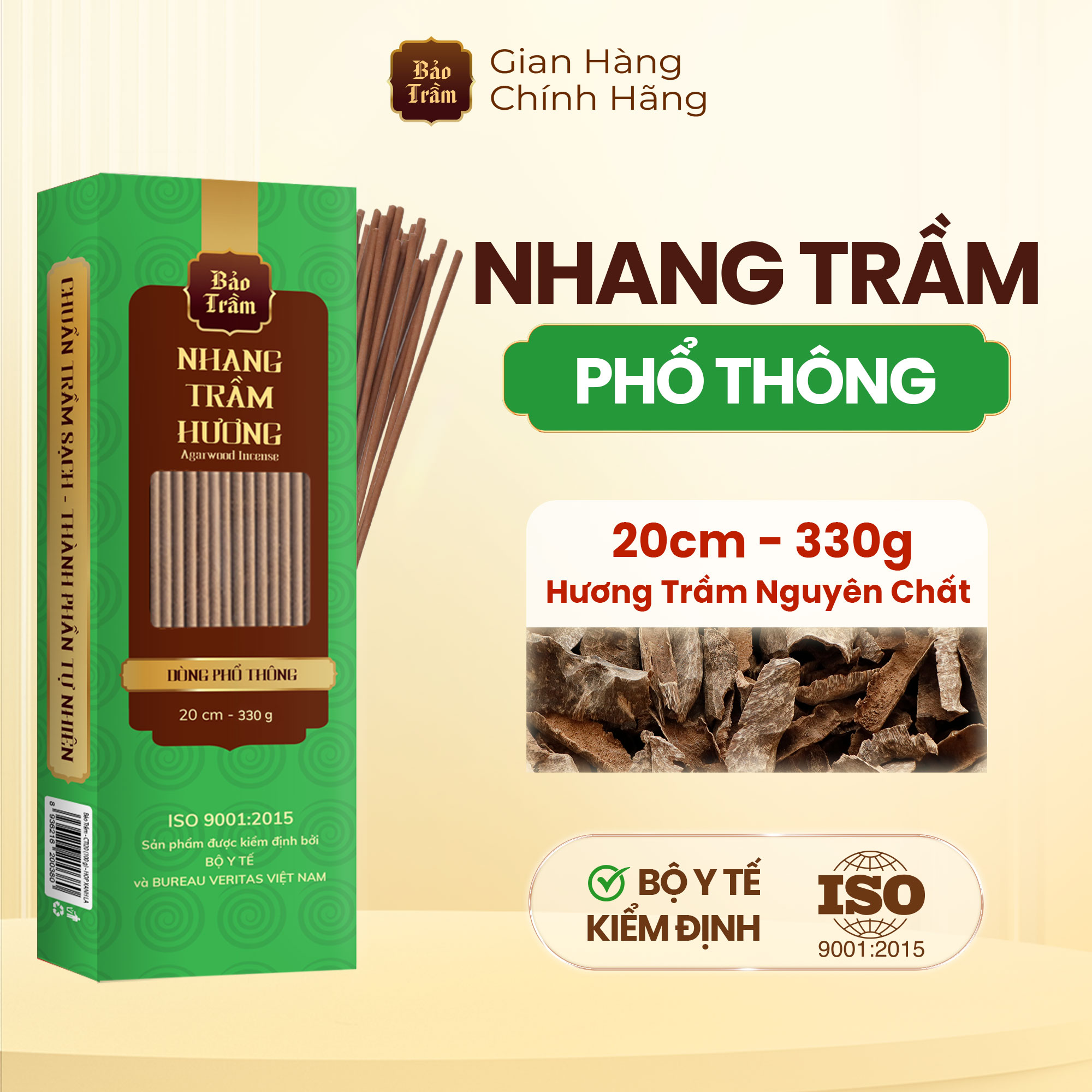 Thông số kỹ thuật Nhang Trầm – Hộp Xanh Lá 600g | Bảo Trầm | Thơm Dịu, Không Hóa Chất, Dùng Cúng Lễ