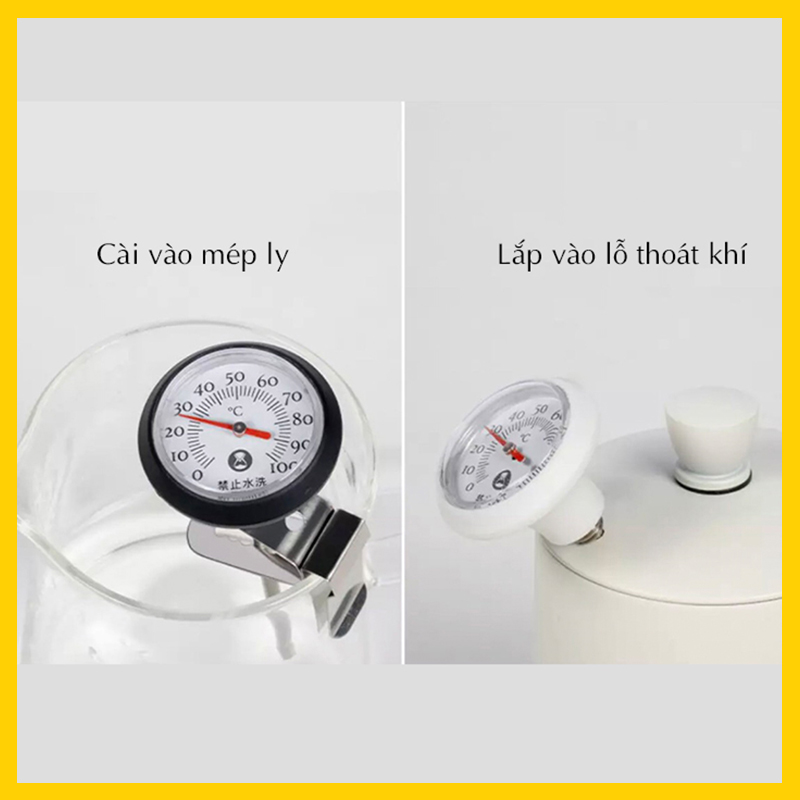 Đầu nhiệt kế có tích hợp ren xoắn, người dùng có thể vặn vào các ấm pha có tích hợp
