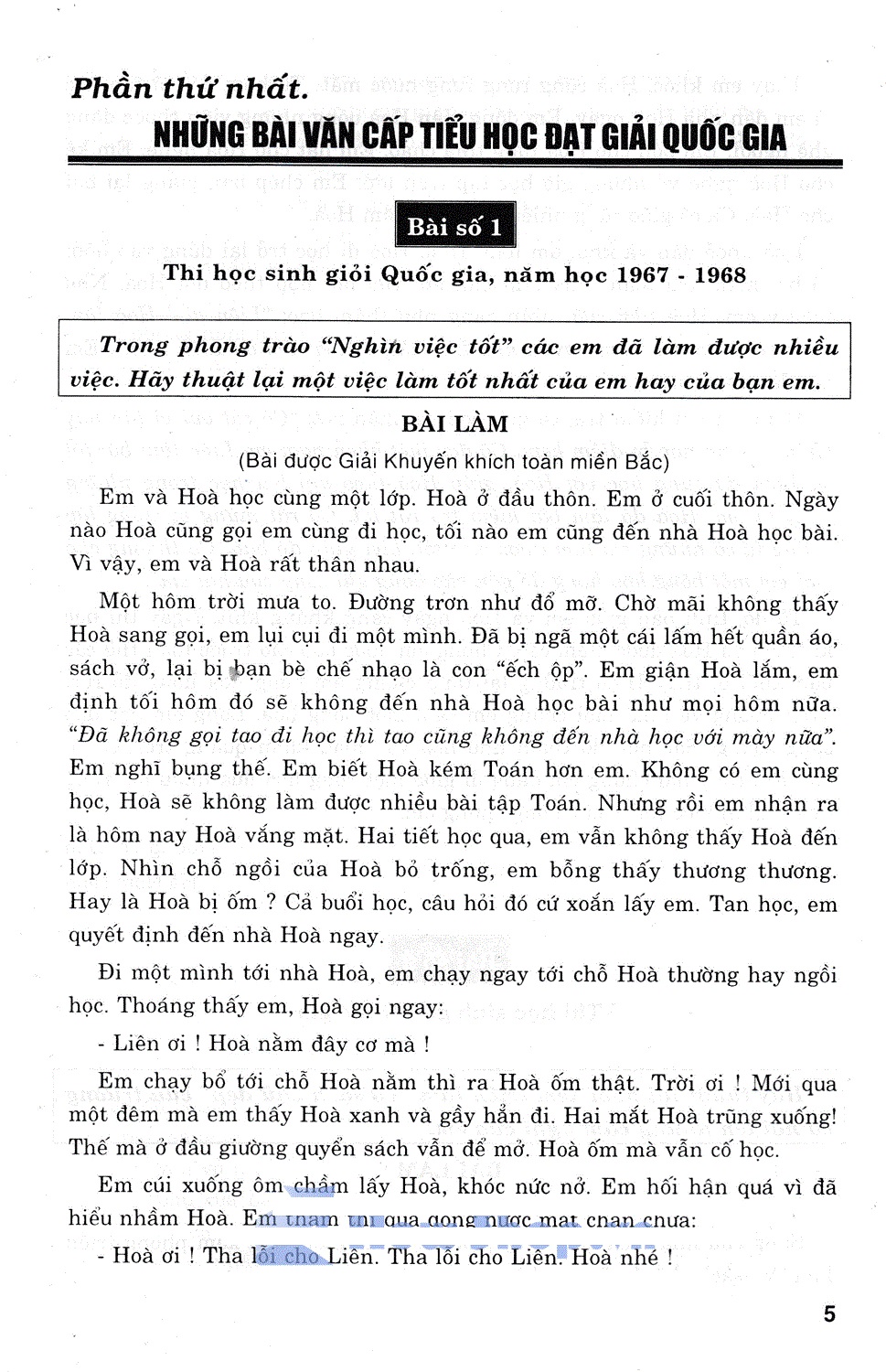 Chúng tôi không viết lời nhận xét, đánh giá vào cuối mỗi bài văn được giải. Sự vật vốn “hữu xạ tự nhiên hương”. Có bài văn, sau hai, ba thập kỉ đọc lại vẫn thấy hay. Vẻ đẹp trong sáng, hồn nhiên của những tâm hồn tuổi thơ vẫn tươi xanh trong dòng chảy thời gian năm tháng. Các độc giả tuổi thơ hôm nay sẽ đọc trực tiếp những bài văn hay của những thế hệ anh, chị đi trước, chắc chắn sẽ học tập được bao bài học quý báu về tư tưởng tình cảm, về văn chương chữ nghĩa...