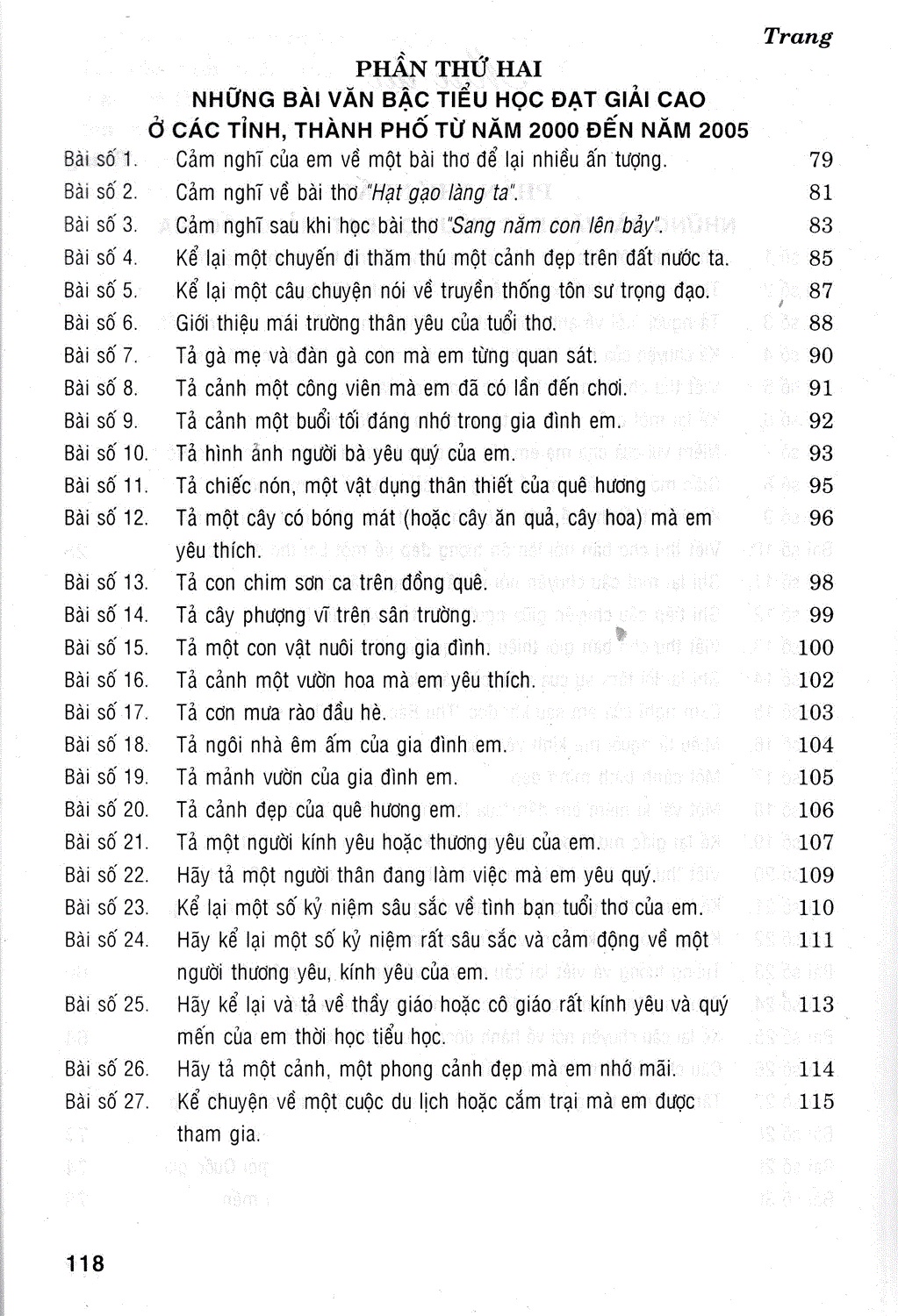 Trong cuốn sách này chúng tôi còn giới thiệu thêm một số bài văn đạt điểm cao trong các kì thi Tiếng Việt từ năm 2000 đến năm 2005 ở các tỉnh, thành phố. Qua đó, các em sẽ tự cảm nhận được hương sắc mỗi bông hoa đẹp trong vườn xuân của mái trường thân yêu trong bốn thập kỉ qua.