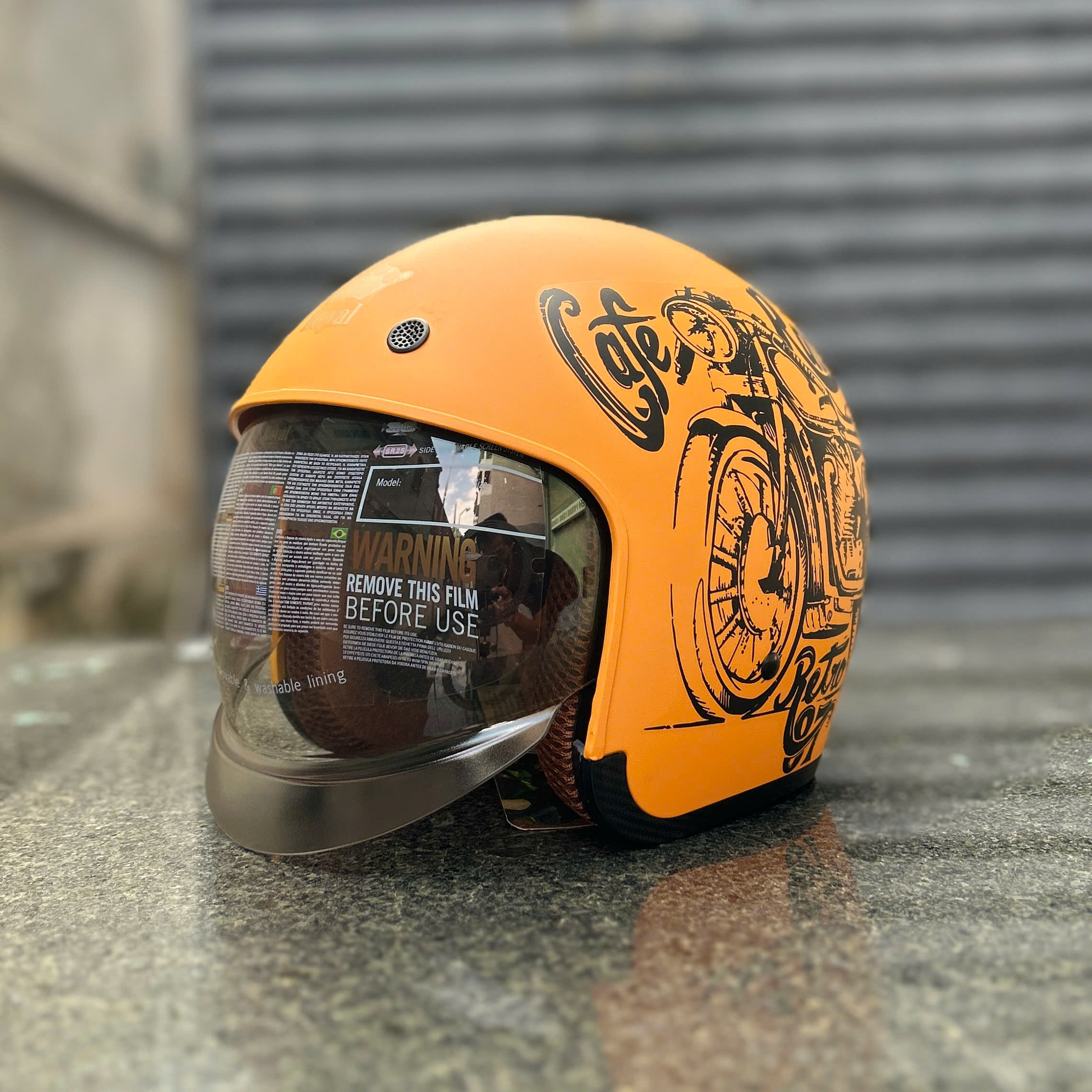 - Lót mũ bảo hiểm làm bằng vải nâu đất, lót tháo lắp dễ dàng vệ sinh tại nhà.