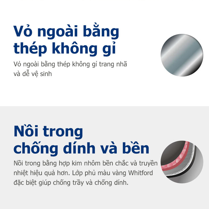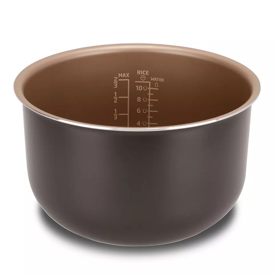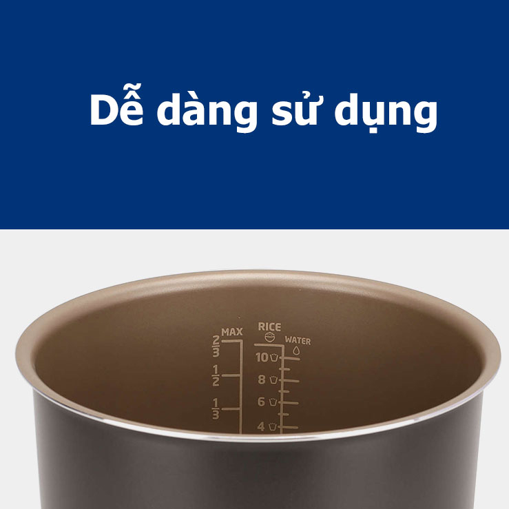 Sản phẩm có phần lòng nồi được làm bằng chất liệu hợp kim nhôm chống dính, an toàn cho sức khỏe, dễ dàng vệ sinh. Kết hợp với bảng điều khiển điện tử và màn hình LCD hiển thị 4 chữ số to rõ, giúp người dùng dễ dàng cài hẹn giờ nấu vô cùng tiện lợi.