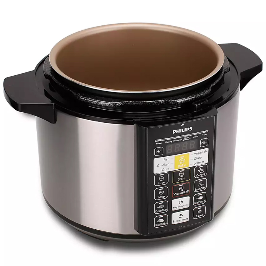 Nồi Áp Suất Điện Tử Philips HD2136 sở hữu thiết kế sang trọng với vỏ ngoài bằng thép không gỉ và dung tích lên đến 5 lít đủ nấu ăn cho cả gia đình. Đặc biệt, nắp của nồi áp suất có ron cao su, giữ nhiệt tốt giúp món ăn bảo toàn chất dinh dưỡng trong món ăn.