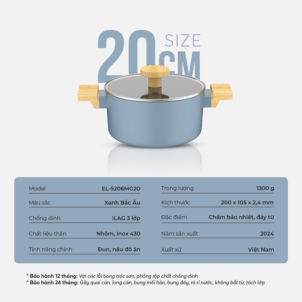 Thông số kỹ thuật Nồi chống dính vân gỗ Elmich Nature EL-5206MG