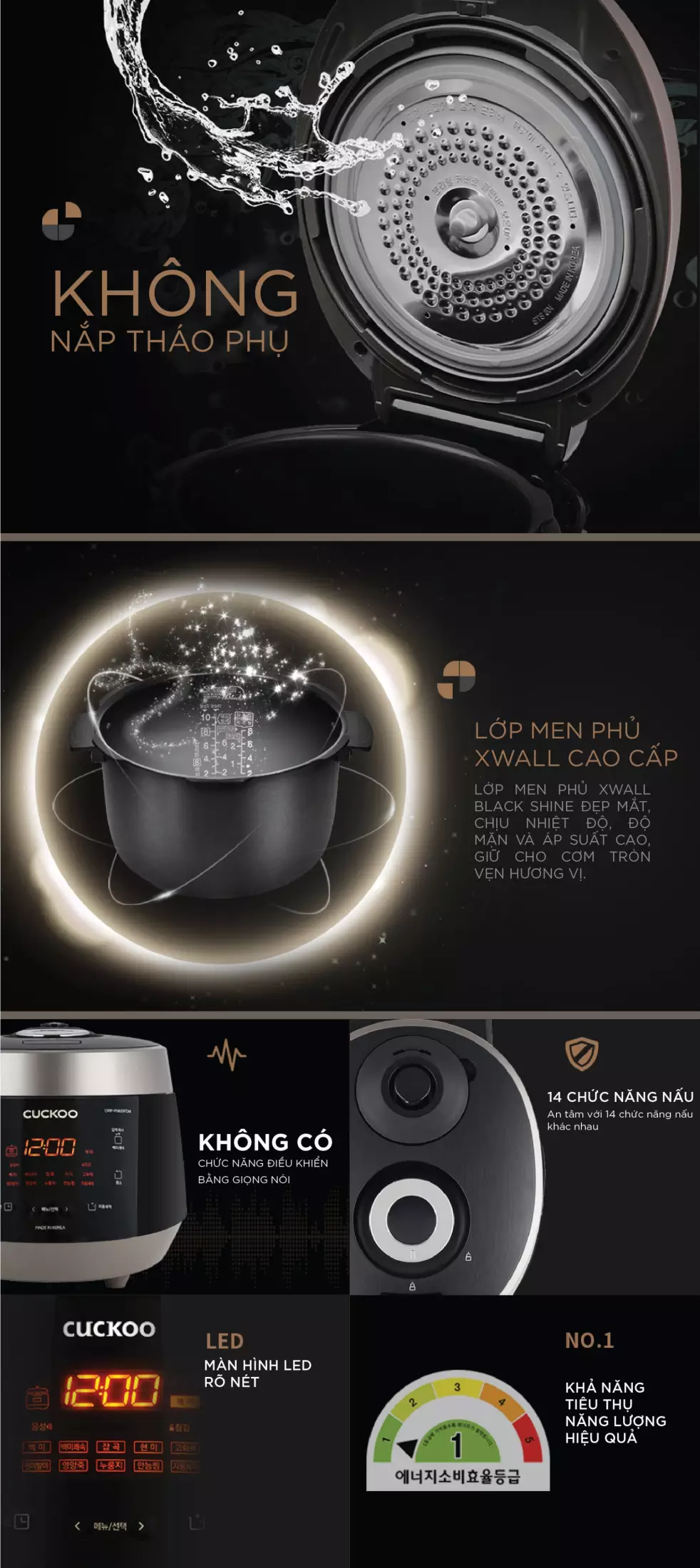Thông số kỹ thuật Nồi cơm điện áp suất Cuckoo CRP-PK1000S 1,8 lít nhiều màu - Hàng chính hãng