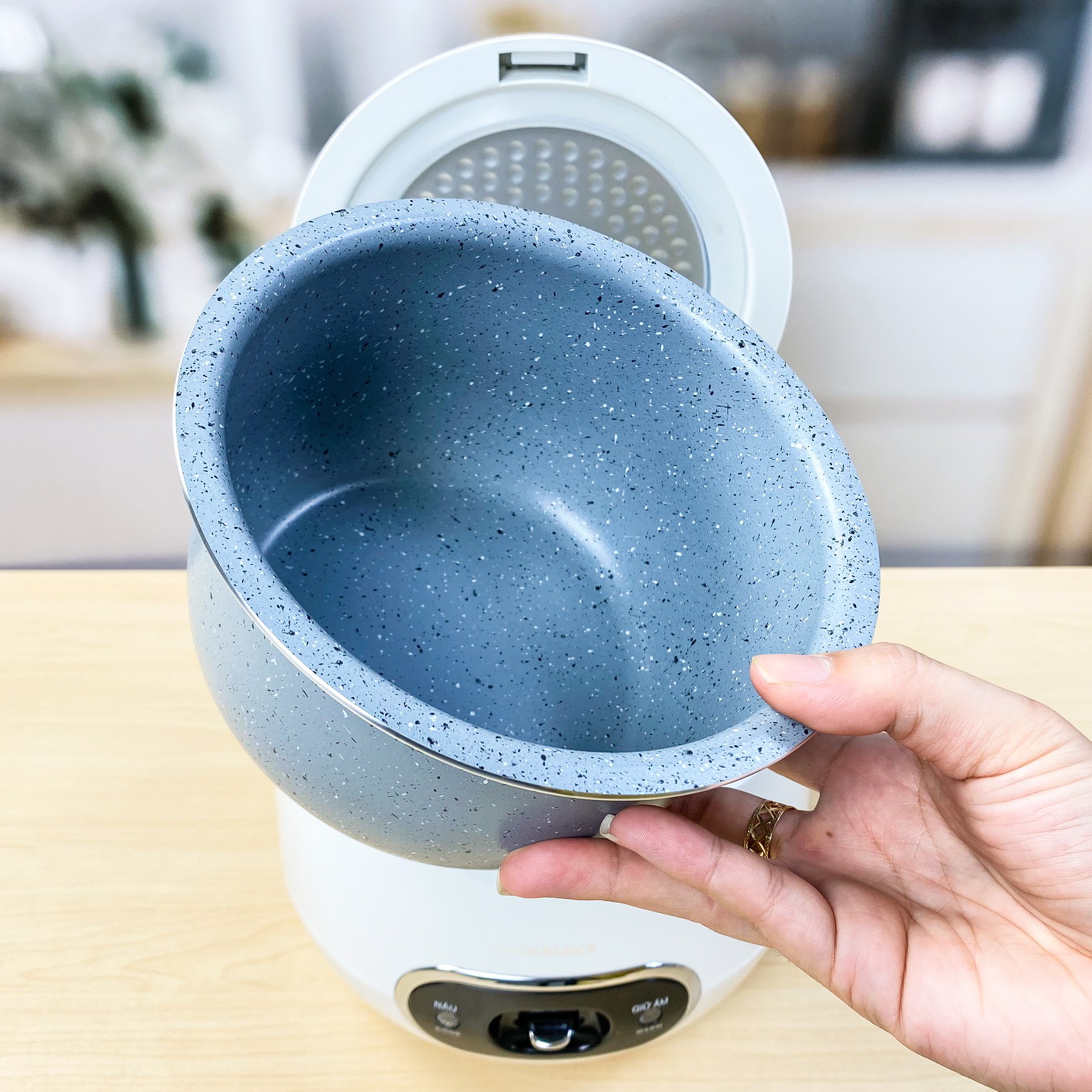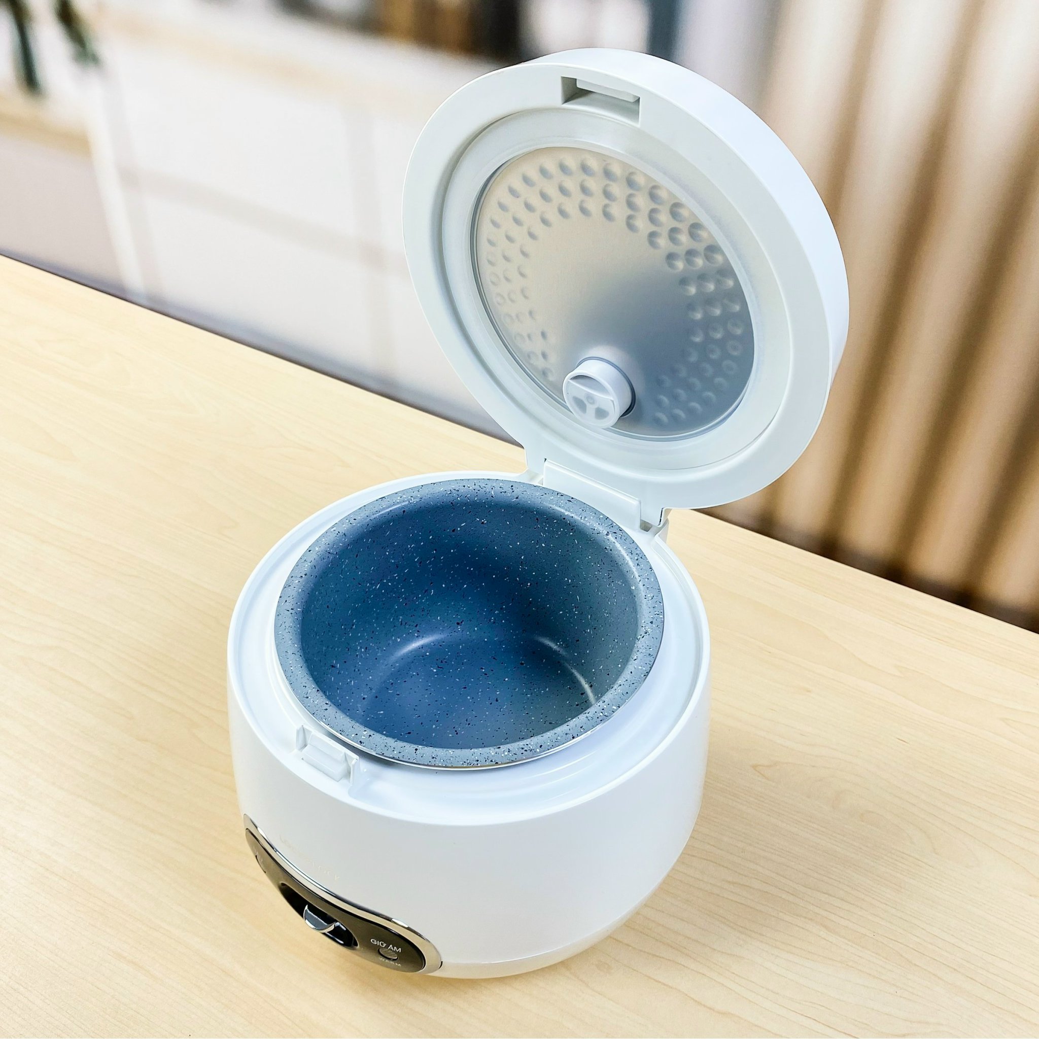 Đã nhận nồi. Đợi lâu mất mí hôm nhưng bõ công nhé. Nồi trắnh phối nút đen tk đơn giản đẹp lắm. Nồi nhìn đáng yêu xịn sò lắm. Lòng nồi bé xíu rất hợp vs đứa có nhu cầu thấp như mình. Nấu 1 bát cơm vẫn ngon luôn. Gạo nở đầu nấu 1 ng ít cơm nhanh lắm. Lòng nồi chống dính dùng siu thích. Chì là ko biết có dễ chầy ko À có 1 khuyết điểm nhỏ là ko có chỗ gác thìa bới cơm. Nồi bé xíu mà cái thìa bới to chà bá lửa.