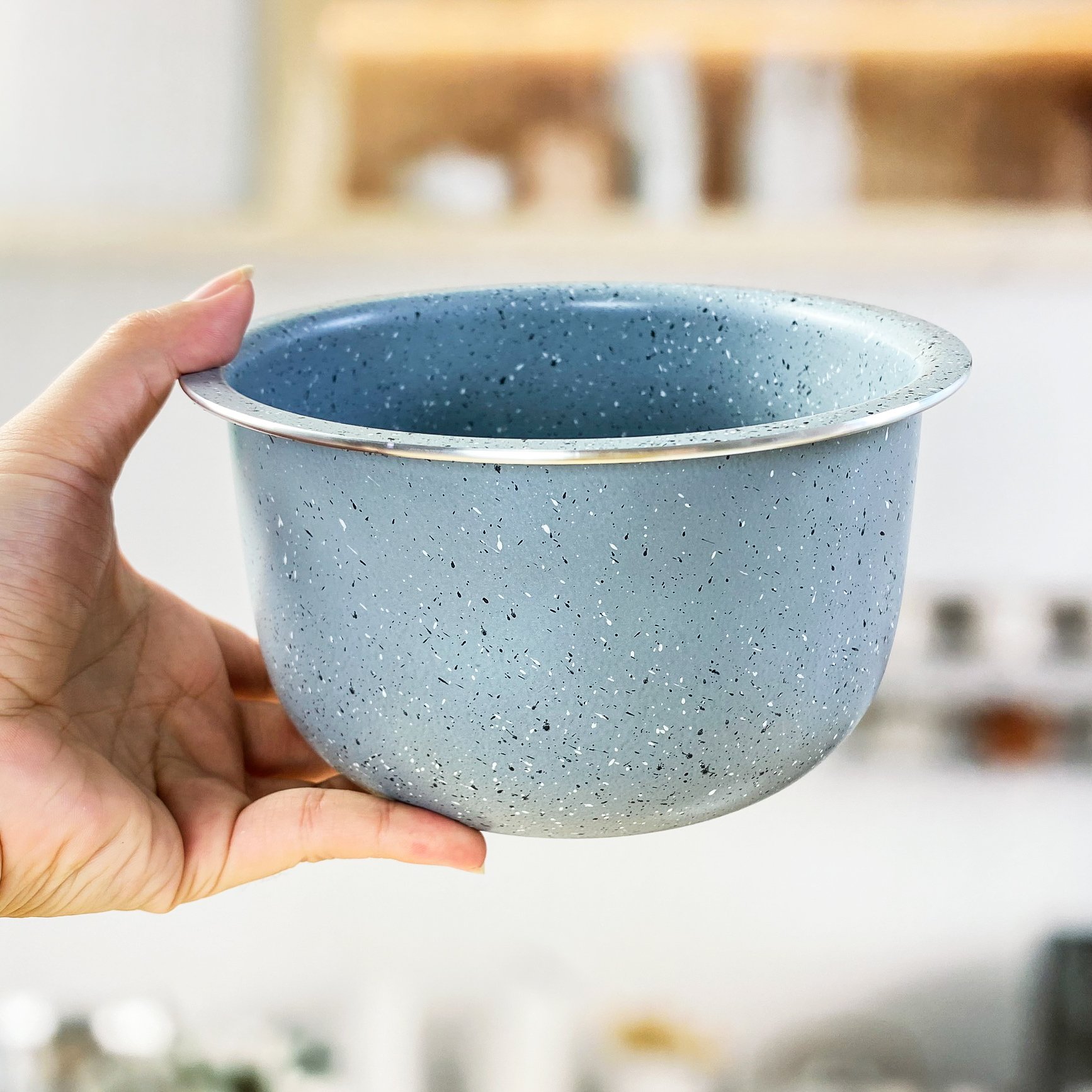 - Nắp nồi trong nhôm chống ghỉ sét, an toàn cho sức khỏe. Bề mặt trơn mịn, dễ lau chùi và vệ sinh sau khi sử dụng, nấu cơm không bị ám mùi cơm cũ.