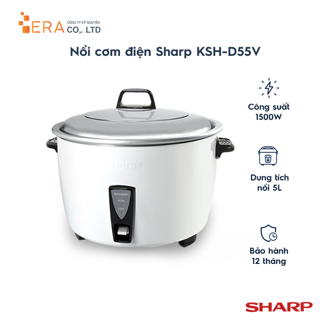 Thông số kỹ thuật Nồi Cơm Điện Nắp Rời Sharp KSH-D55V (5L) - Trắng - Hàng chính hãng