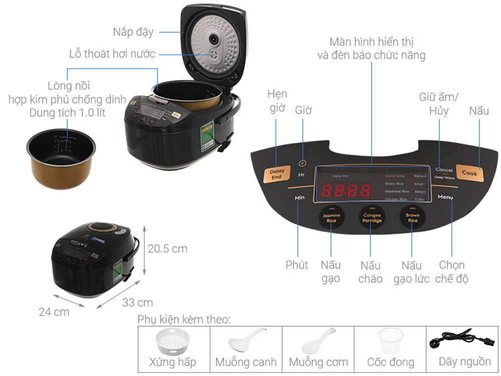 - Phụ kiện đi kèm Xửng hấp, muỗng múc canh, muỗng múc cơm