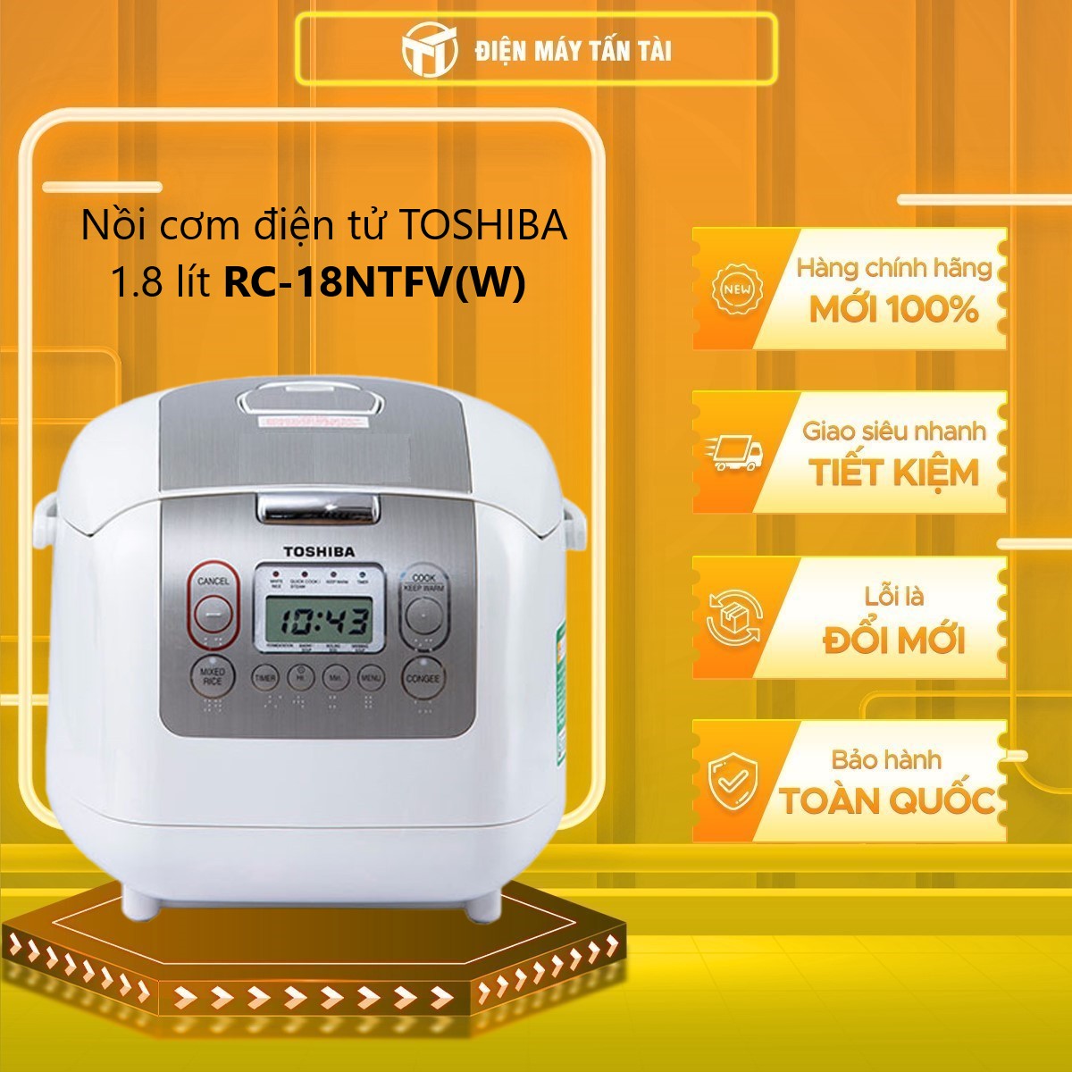 Thông số kỹ thuật Nồi cơm điện tử Toshiba RC-18NTFV(W) (1.8 Lít) - HÀNG CHÍNH HÃNG