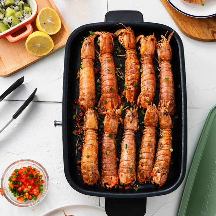 - Bộ sản phẩm bao gồm: 1 Bếp Chính, 1 Chảo Bít Tết, 1 Chảo Sâu Lòng (2.5 Lít) , 1 Vỉ Hấp