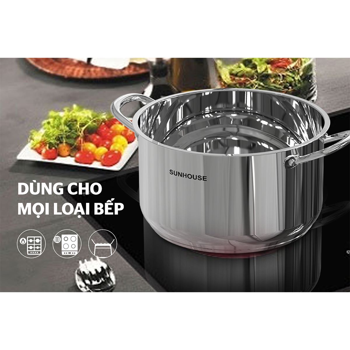 Nồi inox 3 đáy SUNHOUSE SHG301-30 có đáy 3 lớp, có khả năng truyền nhiệt nhanh, tản nhiệt đều, tiết kiệm được thời gian và nhiên liệu khi nấu nướng.