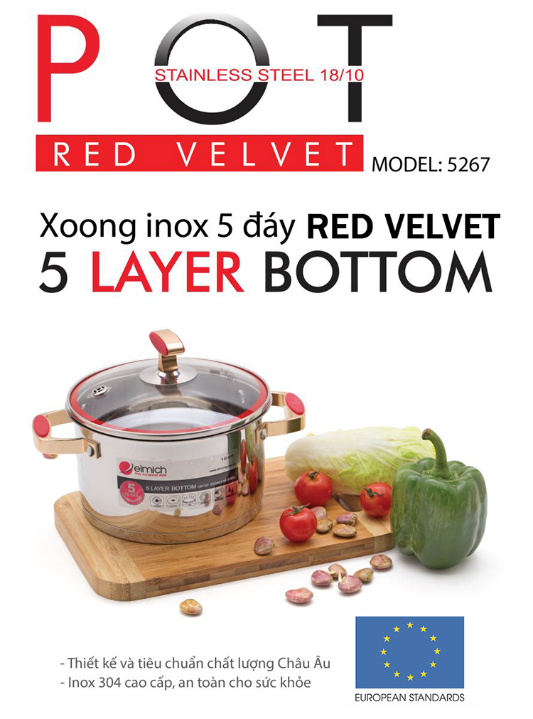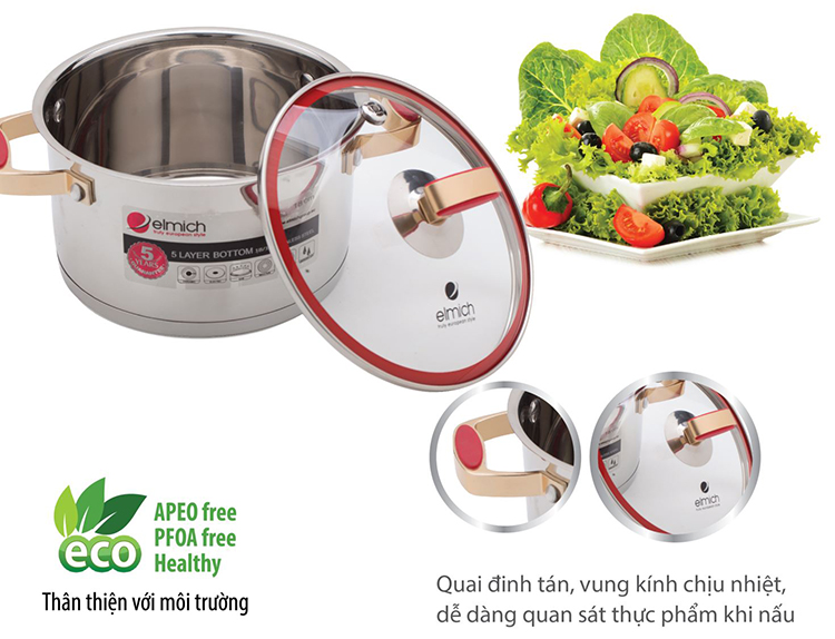 Thông số kỹ thuật Nồi Inox 304 Red Velvet Elmich 2355267 (22cm)