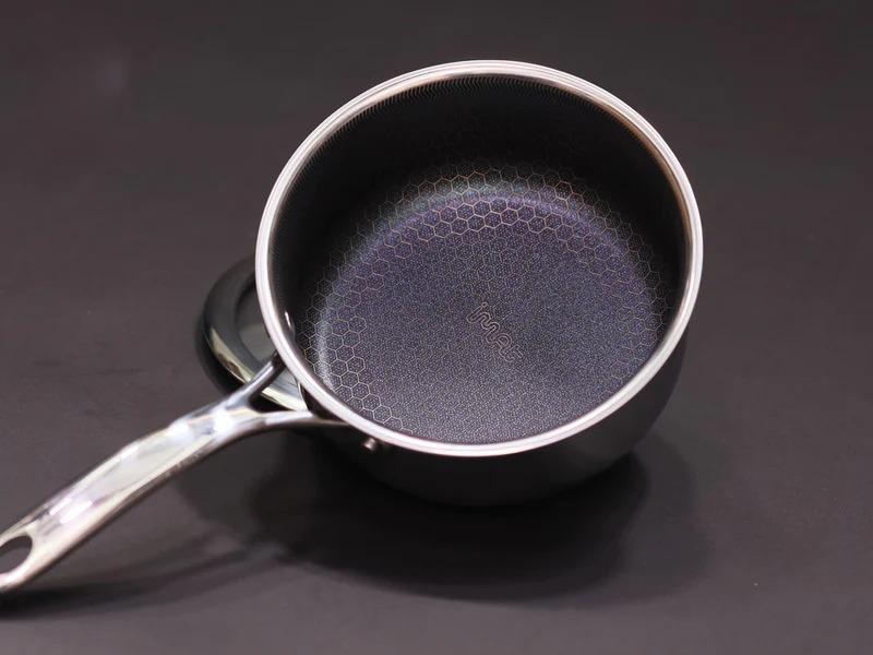 Quánh có thân 3 lớp, lớp chống dính bên dưới trụ inox đến từ hãng Daikin Nhật Bản. Thân dày giữ nhiệt nên nấu nhanh hơn. Có thể vệ sinh trong máy rửa chén và không kén bếp: dùng tốt trên cả bếp từ, điện, gas, hồng ngoại...