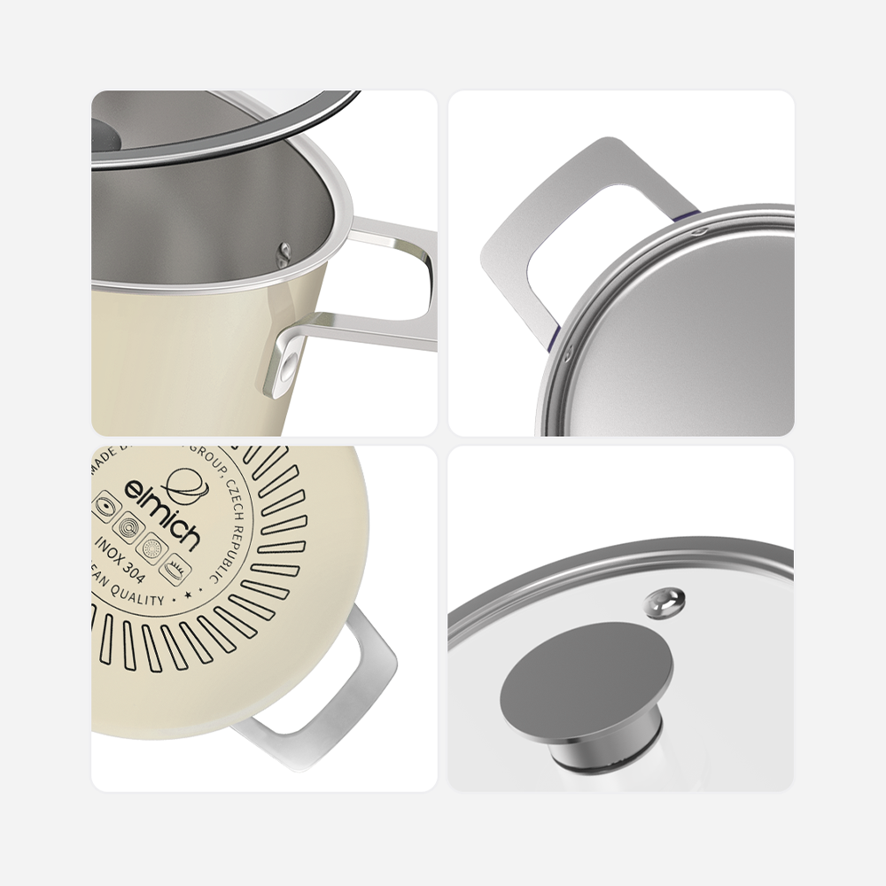 - Nồi inox liền khối Elmich Hera thiết kế hiện đại, màu sắc trẻ trung thời thượng.