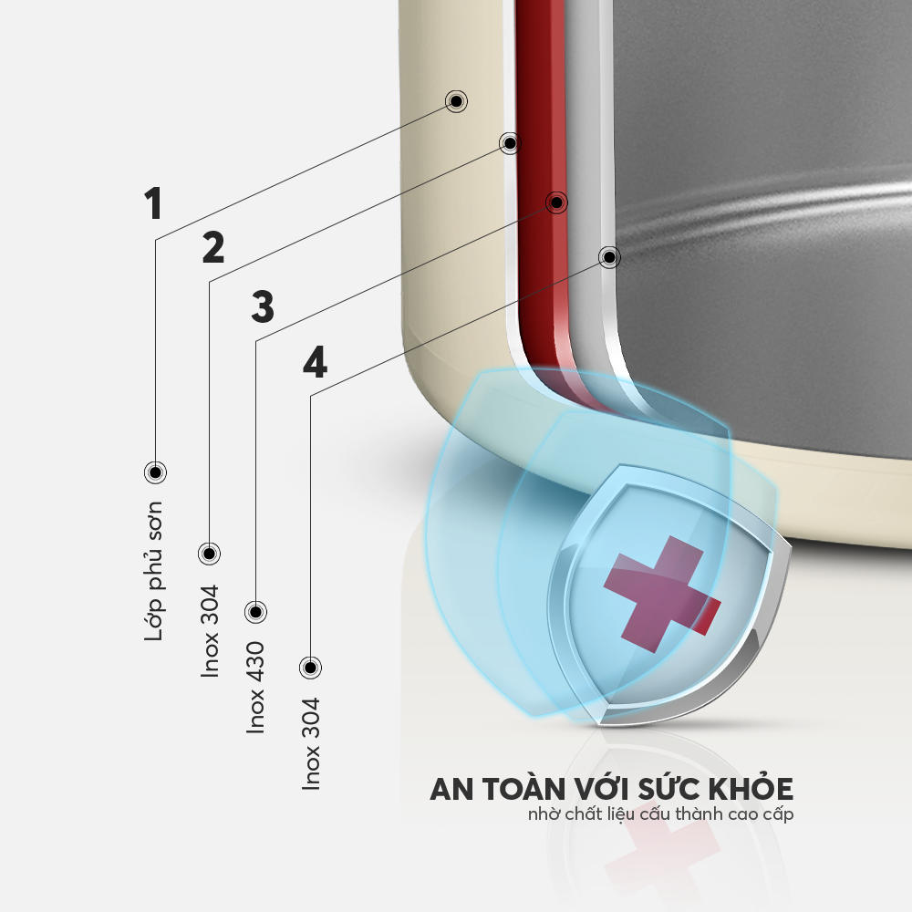 - Chất liệu inox 304 tuyệt đối an toàn cho sức khỏe.