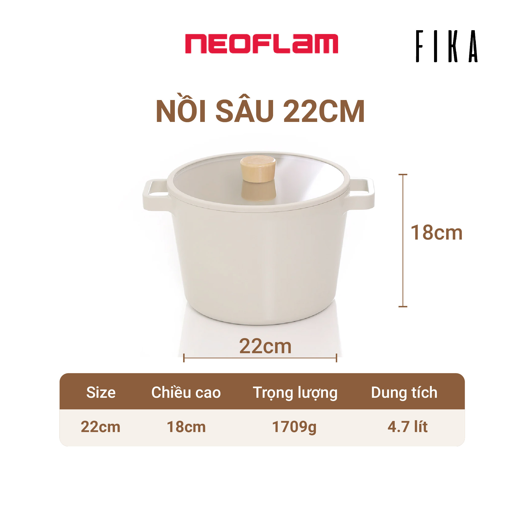 Thông số kỹ thuật [Hàng Chính hãng] Nồi sâu chống dính bếp từ Neoflam Fika - Hàn Quốc 22cm. Made in Korea. Hàng có sẵn, giao ngay