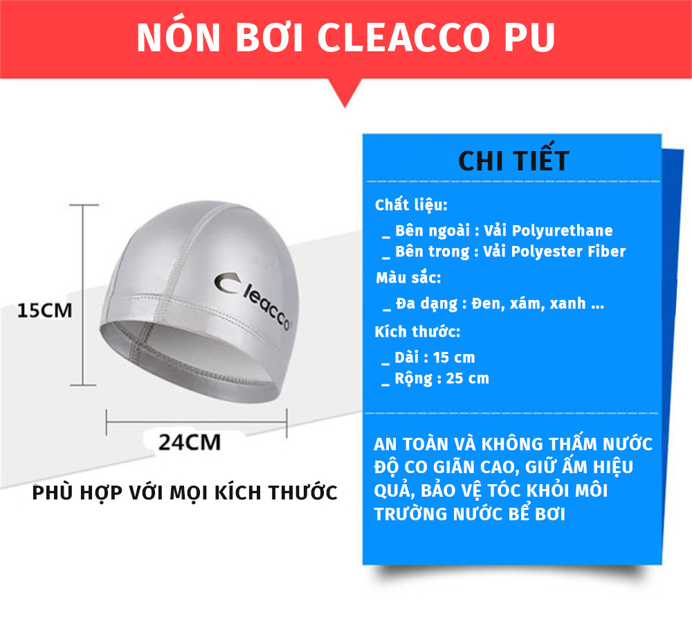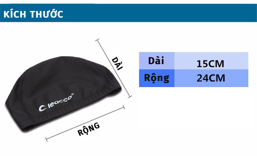 Thông số kỹ thuật Nón Bơi Vải PU co dãn cao cấp, độ đàn hồi cao, bền đẹp , phù hợp với các bạn không quen loại nịt chặt Yesure Cleacco Cao Cấp Chống Thấm Nước , Mềm Mại - Hàng Chính Hãng