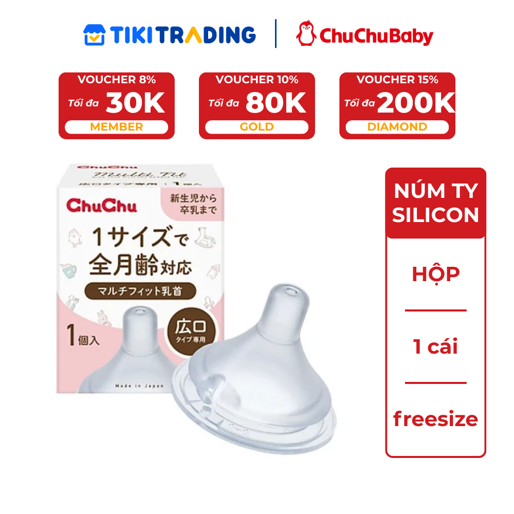 - Núm ty silicon cổ rộng ChuChu Baby Multi Fit được thiết kế đặc biệt để đáp ứng nhu cầu bú sữa tự nhiên của bé, giúp bé bú sữa một cách thoải mái và dễ dàng. Sản phẩm được làm từ chất liệu silicon cao cấp, an toàn cho sức khỏe của bé, đồng thời có khả năng chống sặc sữa, giảm tình trạng đầy hơi ở trẻ sơ sinh.