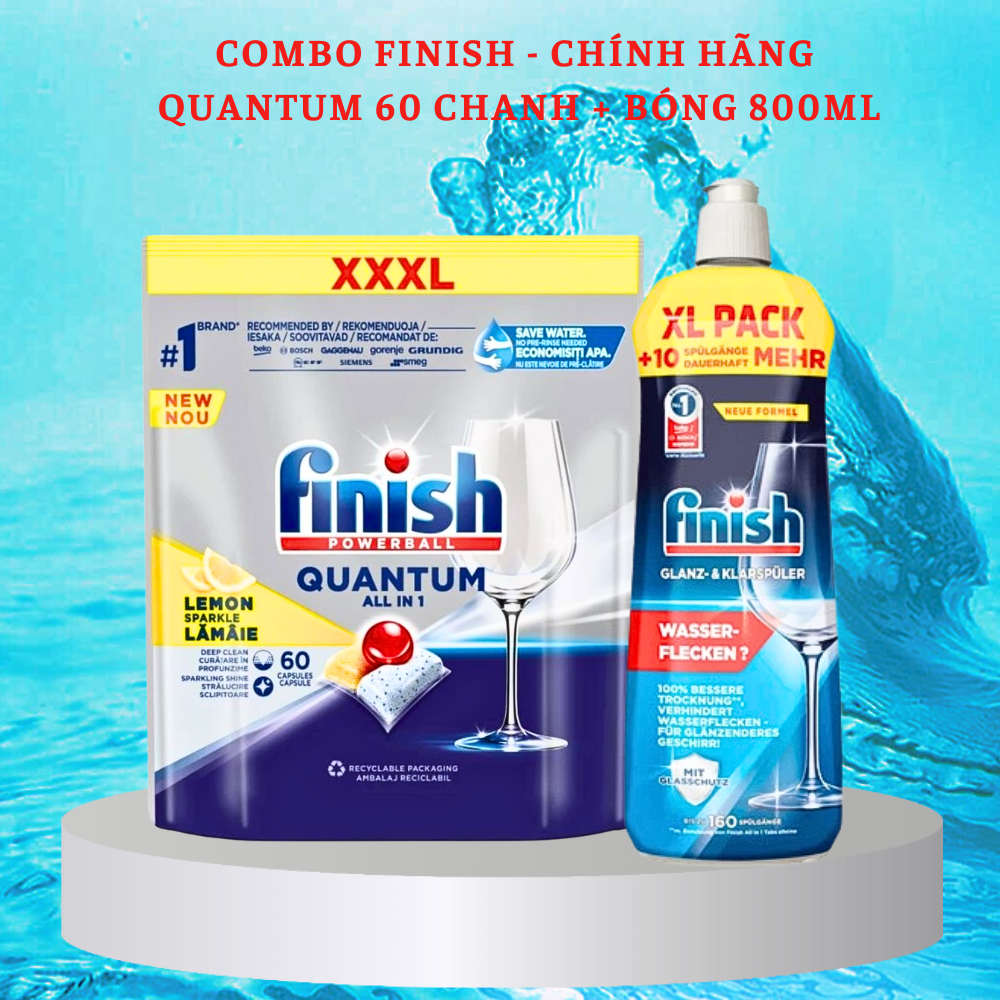 Combo: Viên rửa bát Finish quantum 120 viên + nước làm bóng finish 1200ml