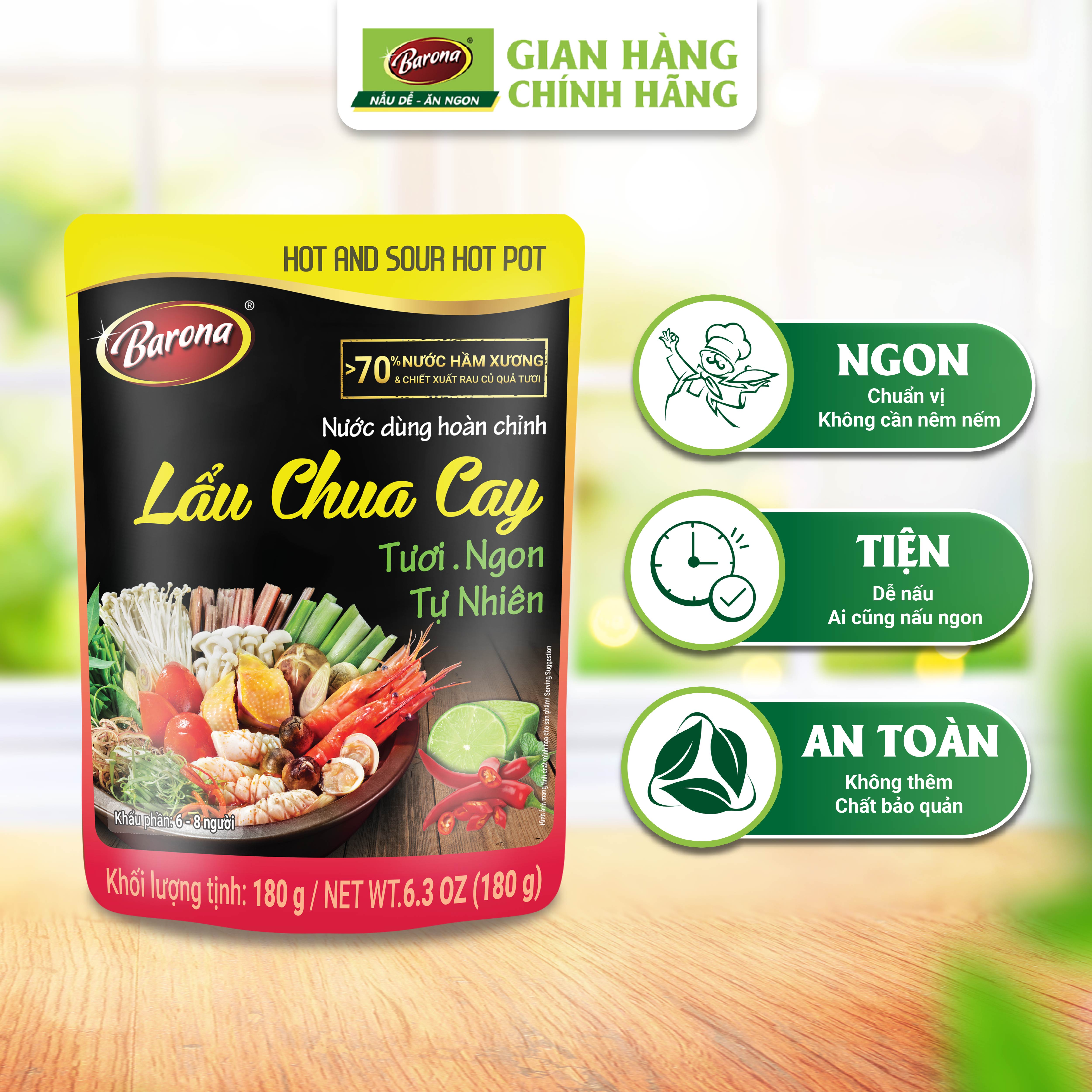 Thông số kỹ thuật Nước Dùng Hoàn Chỉnh Barona - Lẩu Chua Cay 180g