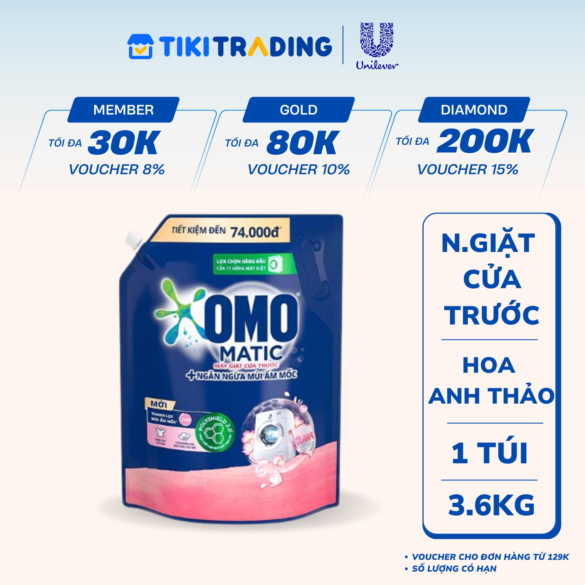 Thông số kỹ thuật Túi Nước Giặt Omo Matic Cho Máy Giặt Cửa Trước Hương Hoa Anh Thảo Ngăn Mùi Ẩm Mốc 3.6KG