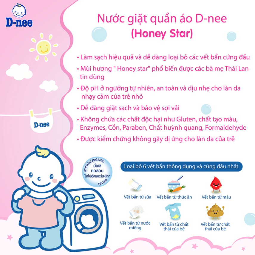 Thông số kỹ thuật Nước Giặt Quần Áo Cho Bé D-nee - Chai 3000ml (Hồng)