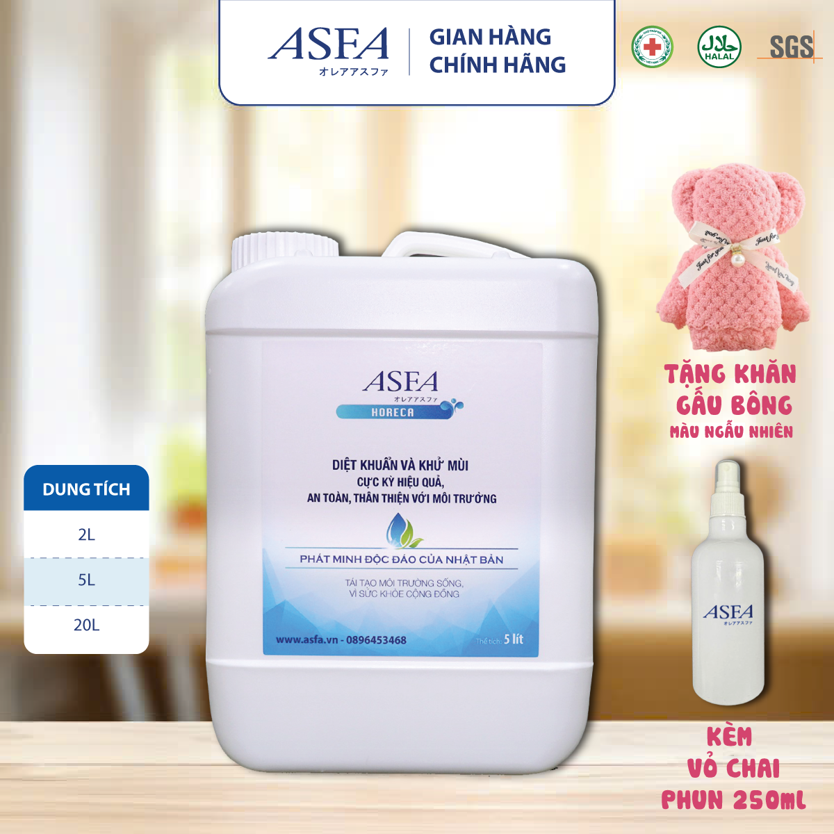 Thông số kỹ thuật Nước khử mùi, kháng khuẩn ASFA dành cho kênh HORECA