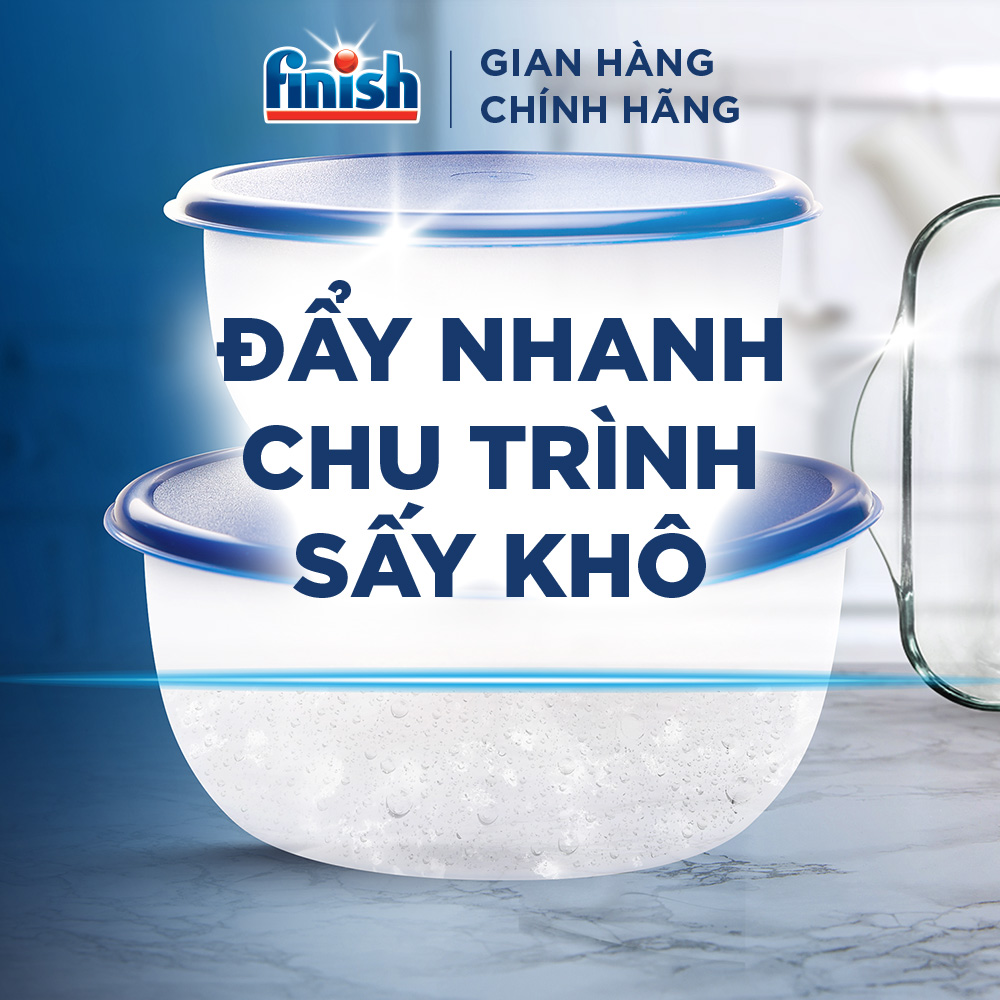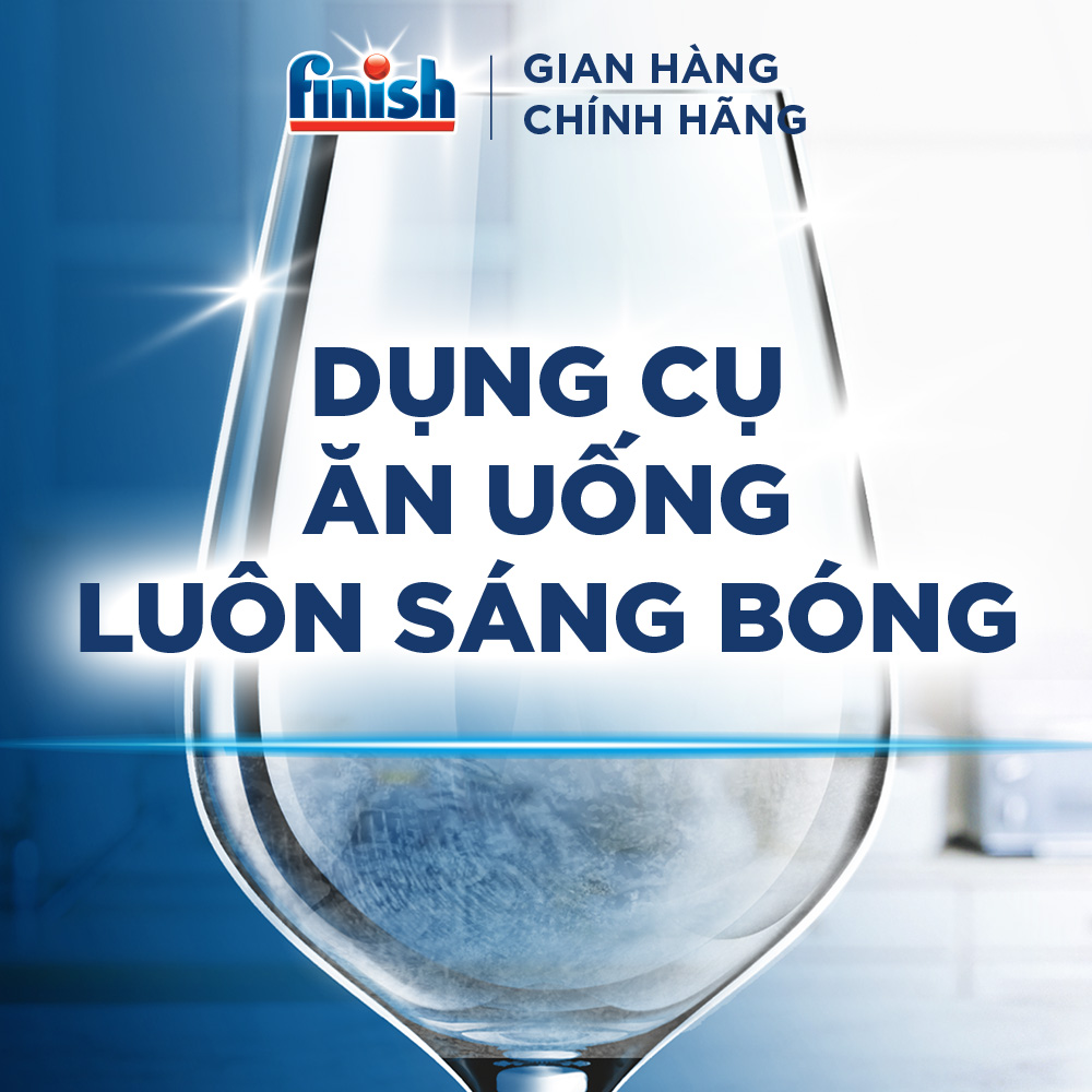 Sức mạnh vượt trội từ công thức bảo vệ chất liệu thủy tinh tân tiến giúp ly tách thủy tinh sáng bóng, sạch trong không tì vết trong thời gian dài. Giúp ly tách khô thoáng gấp 2 lần (so với chỉ sử dụng viên rửa bát Finish) và ngăn ngừa vệt gợn trắng trên thân ly.