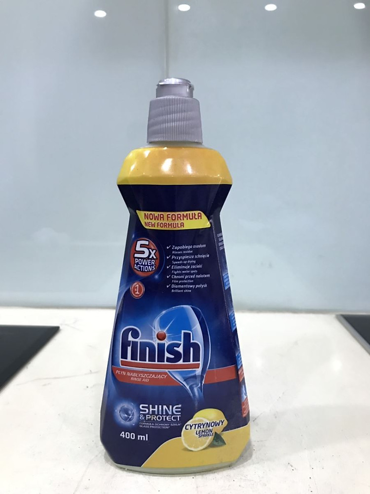 - Là một trong những sản phẩm trợ xả đắc lực giúp khử mùi và lưu lại hương thơm bền lâu trên chén đĩa. Hoạt động bề mặt trong Dầu bóng Finish làm cho nước rửa để chạy ra nhanh chóng và thống nhất, và một sự kết hợp đặc biệt của bề mặt làm tăng tác dụng làm khô đặc biệt là trên thủy tinh, nhựa và thép không gỉ mục. Axit citric ngăn ngừa sự hình thành của các vết bẩn nước và lá món ăn khô, không tì vết và sáng bóng.