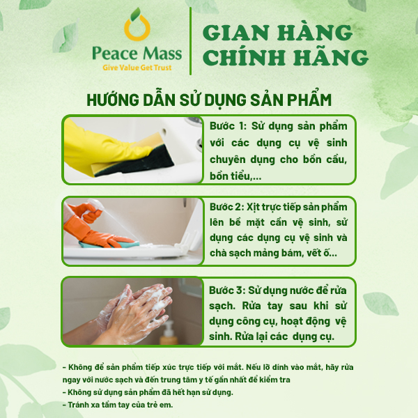 Thông số kỹ thuật Nước Cọ Rửa Toilet Peace Mass Tinh dầu Quế Can 3.6 Lít